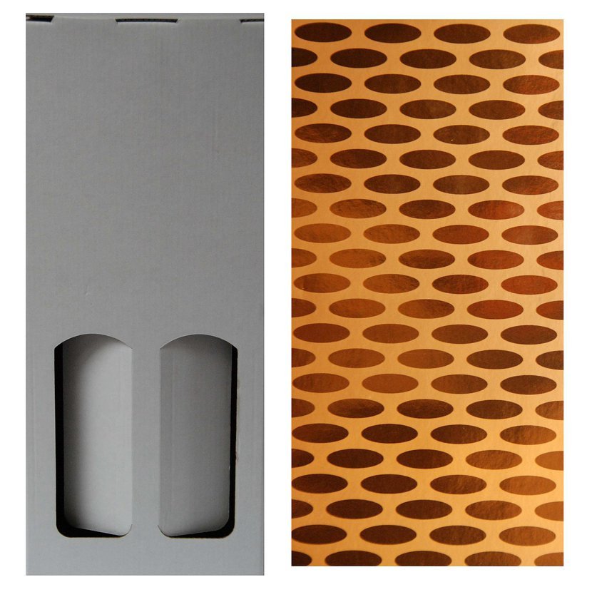 Balení 2 lahví do krabice včetně balení do dárkového papíru - barva papíru zlatá - viz obrázek.